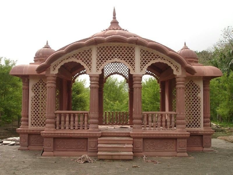 We also offer elegant red stone temples with multiple pillars, embodying traditional designs that add timeless beauty and cultural significance to any setting.